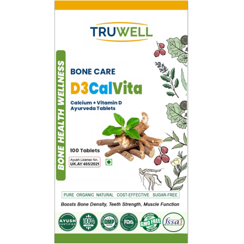 D3CalVita Tablets are clinically approved Ayurvedic supplements formulated to support bone strength, joint health, and overall mobility. Enriched with essential vitamins, including Vitamin D3 and Calcium, this powerful blend enhances bone density, promotes flexibility, and nourishes the body naturally. By combining herbal wisdom with essential nutrients, D3CalVita ensures stronger bones, improved joint function, and a healthier, more active lifestyle. Ideal for those looking for a natural solution to maintain bone and joint wellness.