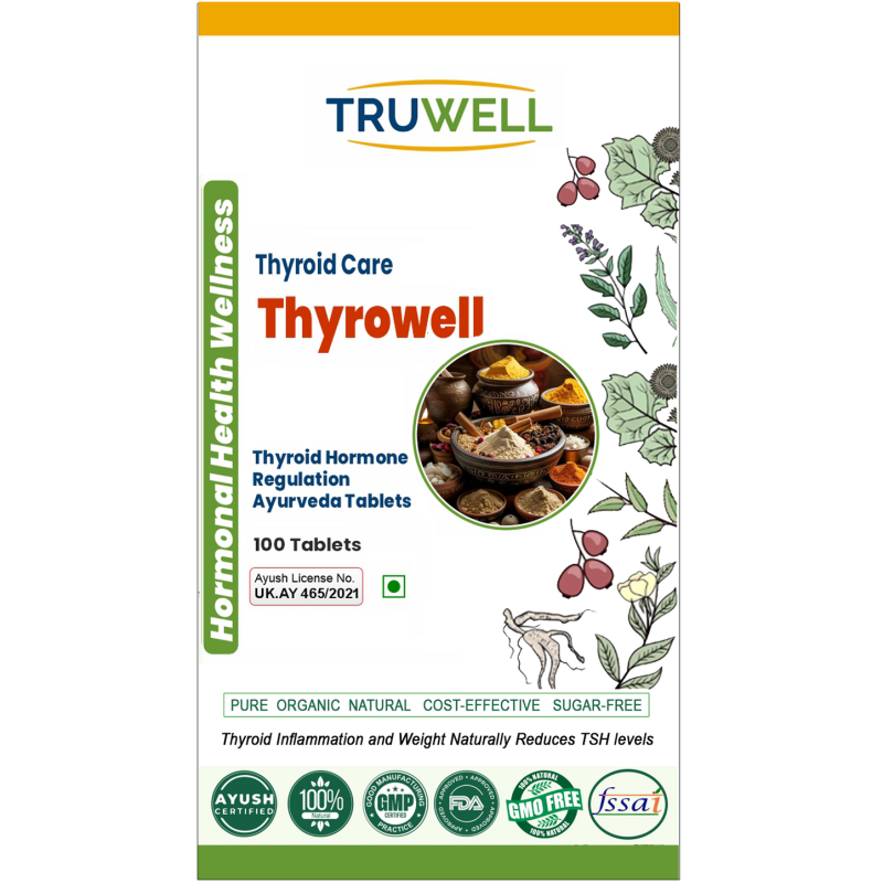 Thyrowell Tablets are clinically approved Ayurvedic formulations designed to support thyroid function, balance hormones, and promote overall endocrine health. Enriched with powerful herbs like Praval Pishti, Haldi, Ashwagandha, Giloy, Mulethi, and Tulsi, Thyrowell helps regulate metabolism, reduce inflammation, and strengthen immunity. This holistic blend enhances energy levels, improves mental clarity, and supports long-term thyroid wellness, making it an ideal natural solution for hormonal balance and metabolic health.